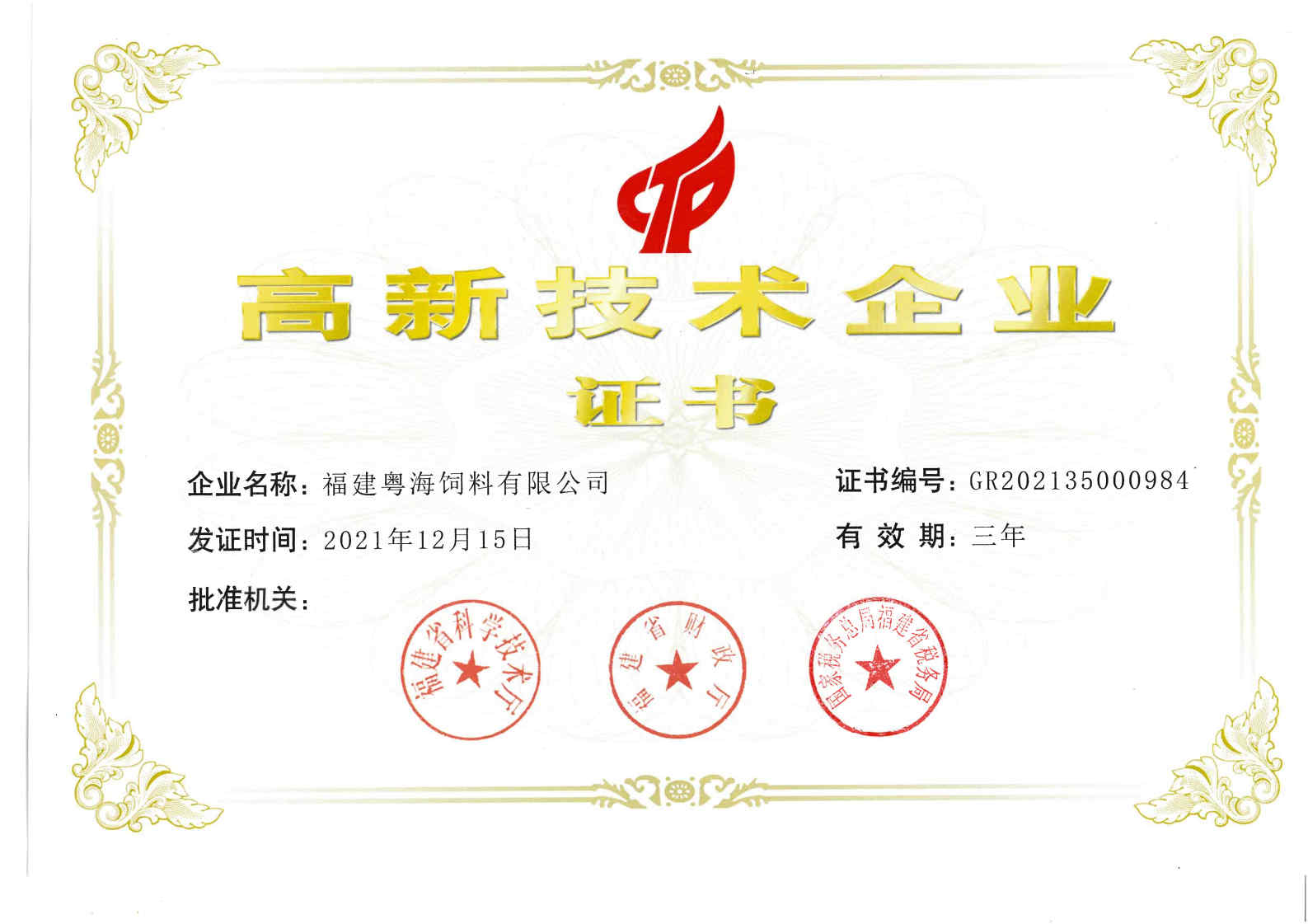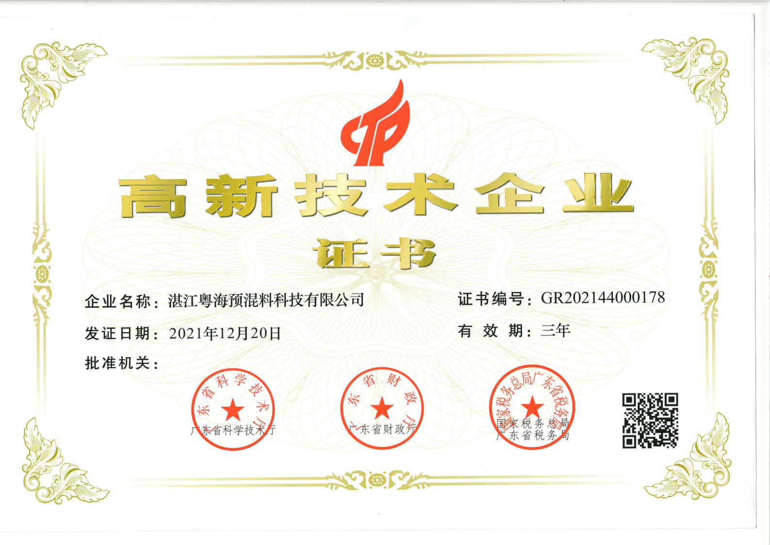 高新手艺企业证书-预混料